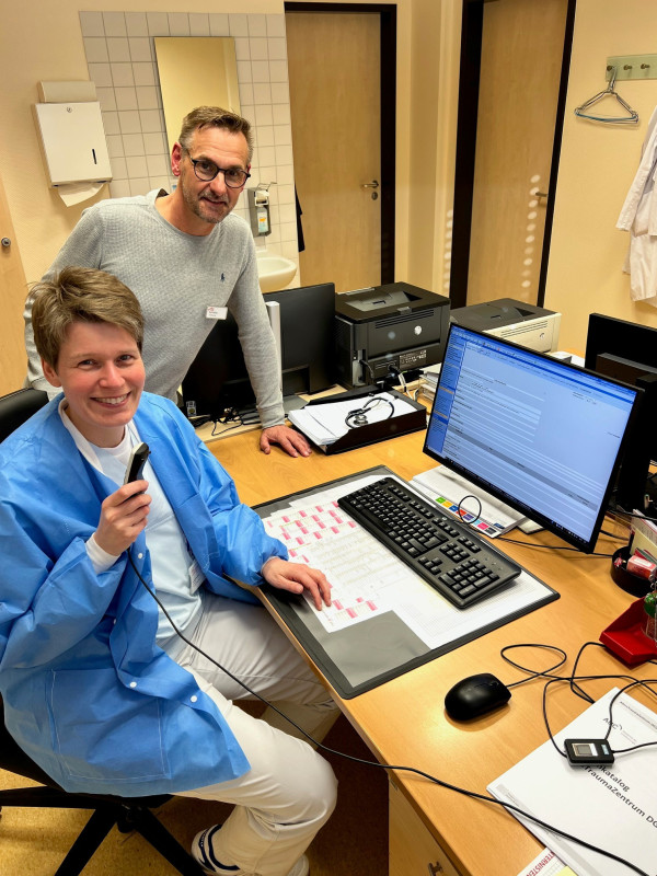 Die Akzeptanz bei den Anwenderinnen und Anwendern war von Beginn an hoch. „Die Ärzte waren auf Anhieb sehr überzeugt“, berichtet IT-Projektleiter Ralf Müller. Die Handhabung ist intuitiv: ins Mikrofon sprechen – der gesprochene Text erscheint sofort im Dokument. Unterstützt wird der Prozess durch strukturierte Vorlagen, etwa für Arztbriefe, in denen gezielt einzelne Felder angesteuert und direkt befüllt werden können.