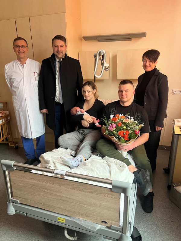 Die Ärztliche Direktorin Margret Reiter gratulierte der frisch gebackenen Familie ganz herzlich zu ihrem ersten Kind und ergänzte: „Die interprofessionelle Zusammenarbeit aller Beteiligten - vor, während und nach der Geburt - bietet den Eltern Sicherheit und gewährleistet zu jeder Zeit die bestmögliche Versorgung für Mutter und Kind. Wir sind stolz auf unser engagiertes geburtshilfliches Team.“